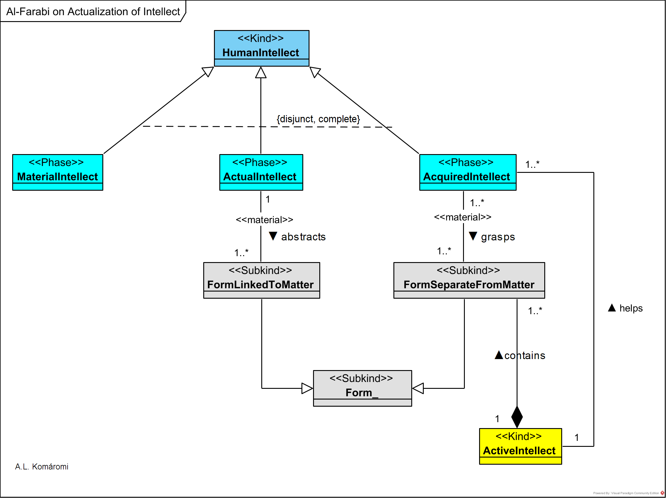 | ActiveIntellect | Active intellect is emanated by the second intellect (see [3.2.1]), and helps the grasping of forms separated from matter by the acquired intellect. | contains FormSeparate FromMatter; helps AcquiredIntellect |