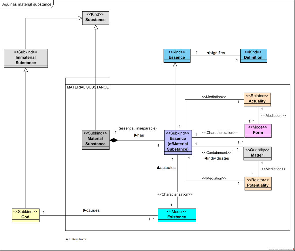 The following OntoUML diagram presents Aquinas’s model of material substances: