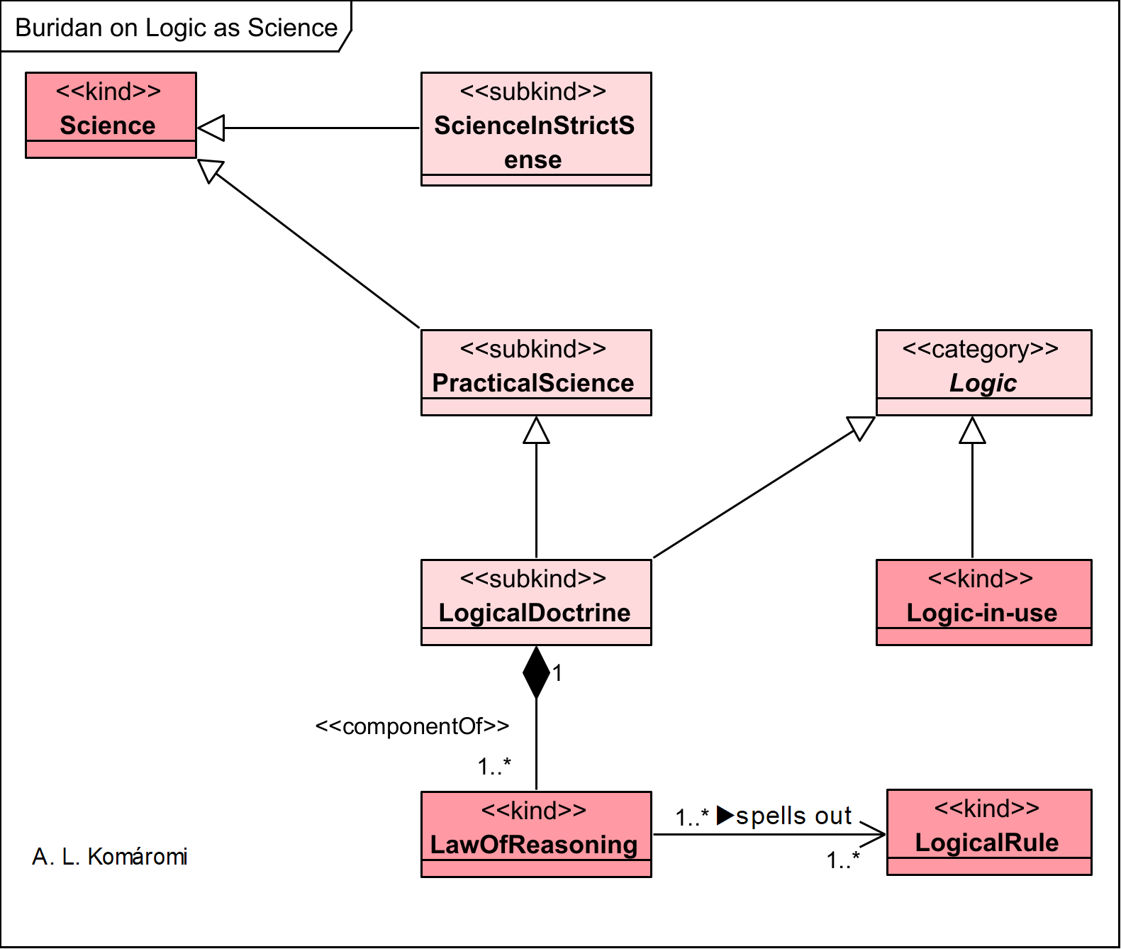 The following OntoUML diagram shows the logic’s place in the hierarchy of science according to Buridan: