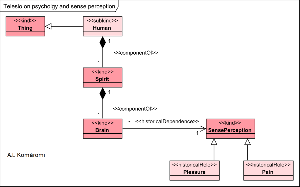 The following OntoUML diagram shows Bernardino Telesio’s model psychology: