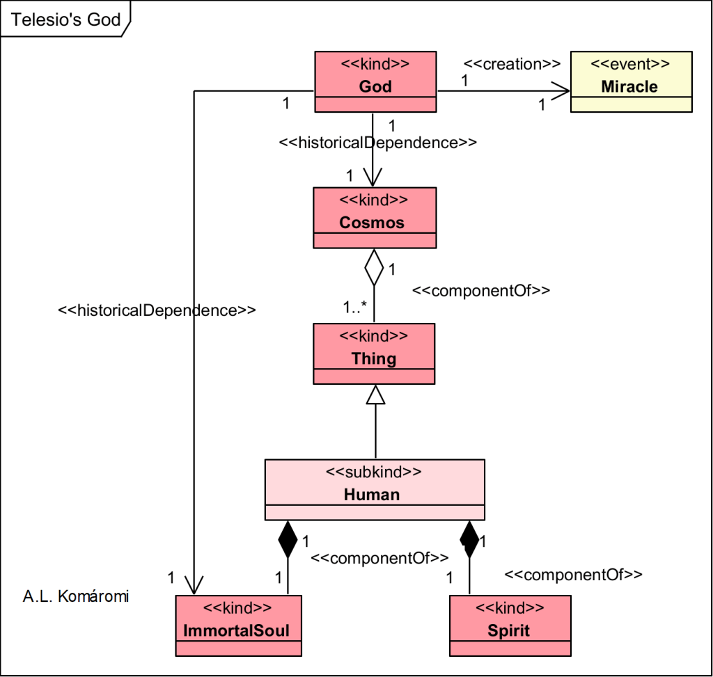 The following OntoUML diagram shows Telesio’s model of God-