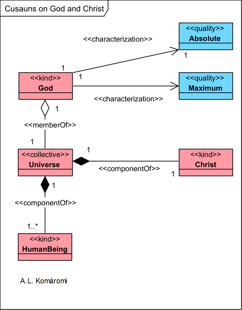 The following OntoUML diagram shows Cusanus model of God: