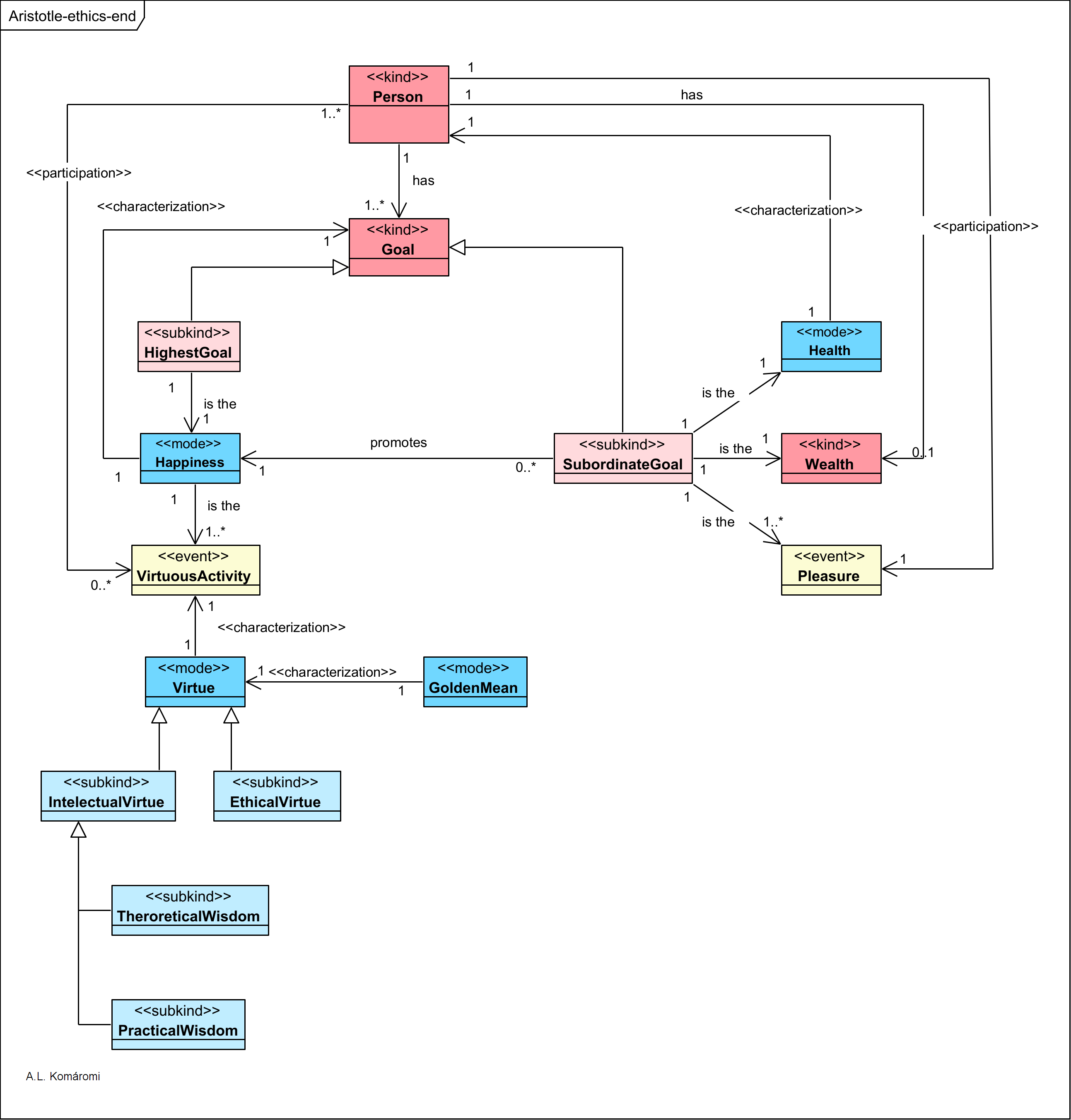 The OntoUML diagram below presents the personality traits of Aristotelian ethics: