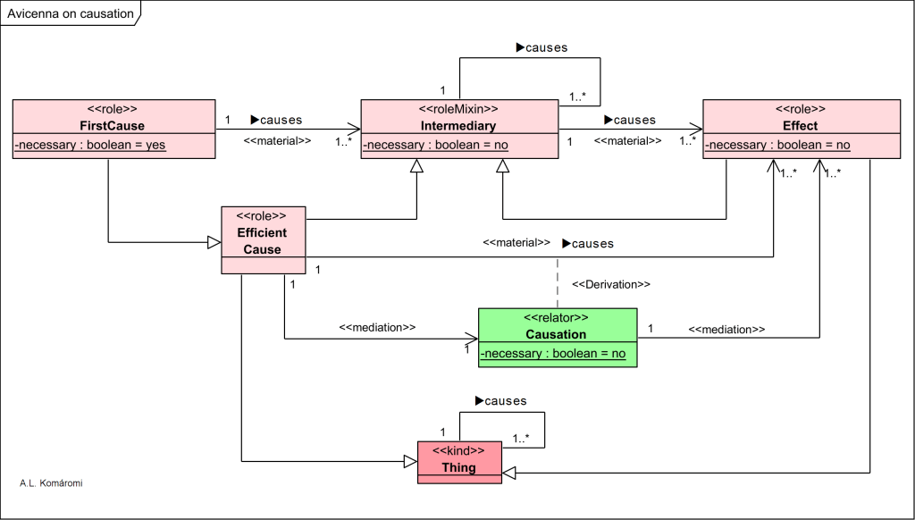 Avicenna’s metaphysical chain of causation is presented in the following OntoUML diagram: